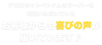 ベトナムでインターネットを使用する際、特によく起こる問題が海底ケーブルの障害による通信速度の低下です。チロロネットのサーバーはベトナム国内のデータセンターに設置されているため、いつでも快適に利用いただけます。
